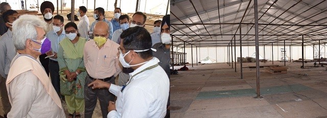 LG Manoj Sinha visits construction site of DRDO Covid Hospital at Bhagwati Nagar & took first-hand appraisal of ongoing work.
